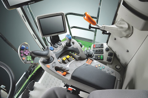 La cabine CommanderCab VI a été revue pour proposer maintenant toutes les commandes au nivaeu de l'accoudoir. Les habitués de la marque remarqueront les similitudes avec la cabine Maxivision. Le tout nouvel écran tactile iMonitor de 8" concentre toute la surveillance de la moissonneuse-batteuse. Un second écran iMonitor de 12" sera positionné lorsque le système Precision Farming AgroSky sera employé, avec la capacité de piloter 3 caméras positionnés tout autour de la machine.