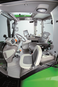 Le niveau de confort de la cabine de la Série 6 est exceptionnel. La nouvelle cabine MaxiVision de cette série, lumineuse et conviviale, représente un critère de référence grâce à sa visibilité à 360 degrés, son environnement de travail et son utilisation intuitive. Le nouveau InfoCentre Pro sur le tableau de bord la planche est doté d'un écran couleur de 5", fournissant au conducteur une variété de données sur les conditions opérationnelles du tracteur. Il offre une commodité maximale en termes de réglages et d'informations. Le nouvel accoudoir avec poignée MaxCom est extrêmement confortable. Afin de garantir un travail précis et sans stress de jour comme de nuit, DEUTZ-FAHR propose en option un système d'éclairage LED de 40 000 Lumen, comptant jusqu'à 16 phares de travail. L'habitacle est incroyablement apaisant. Il ne laisse passer ni le bruit du moteur, ni les vibrations ni la chaleur car la cabine et le capot moteur ne sont pas reliés entre eux. Le nouveau système de climatisation est silencieux et garantit une distribution uniforme de l'air, comme aucun autre modèle de cette gamme ne peut le faire. Le toit ouvrant est disponible selon trois modèles : un toit ouvrant vert en polycarbonate, un toit en verre absorbant les UV ou la version à sécurité FOPS pour une visibilité optimale avec le chargeur frontal. Unique sur le marché : les agriculteurs et les entrepreneurs peuvent choisir parmi différents niveaux de confort de la cabine et de multiples équipements. La cabine MaxiVision de cette série est dotée de distributeurs électrohydrauliques (pour les modèles TTV ou RCshift) et de distributeurs mécaniques (pour les modèles RCshift ou Powershift). Pour tous les modèles, les commandes intégrées du relevage avant et du chargeur frontal sont mécaniques ou électrohydrauliques en fonction des configurations.